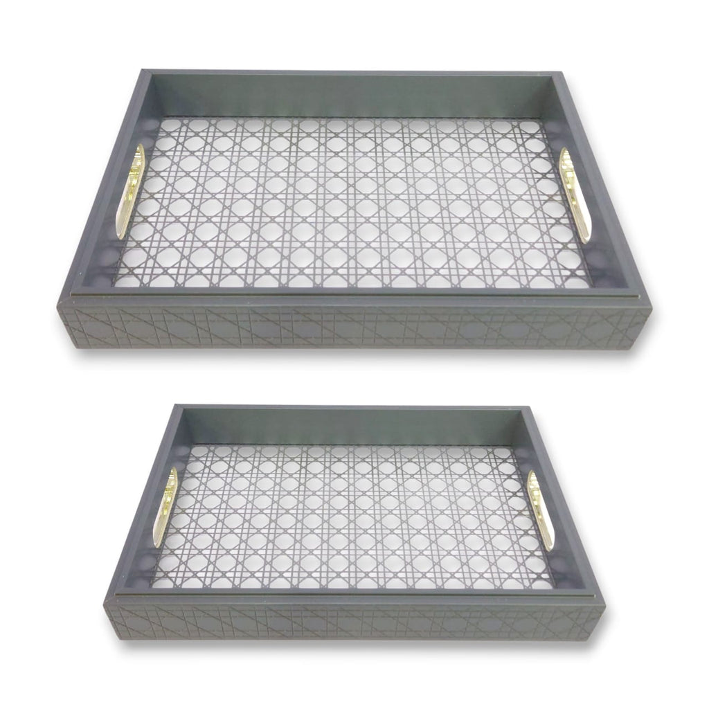 Elevate your serving experience with this 2-piece fancy tray set, featuring one large and one small tray crafted from durable wood and sleek acrylic. Available in black, brown, and grey, these trays blend functionality with style, making them perfect for organizing or presenting items with a modern touch. Their varying sizes offer versatile use, from serving snacks to displaying decorative pieces. Designed for both durability and elegance, this set is ideal for enhancing any space with understated sophistication.