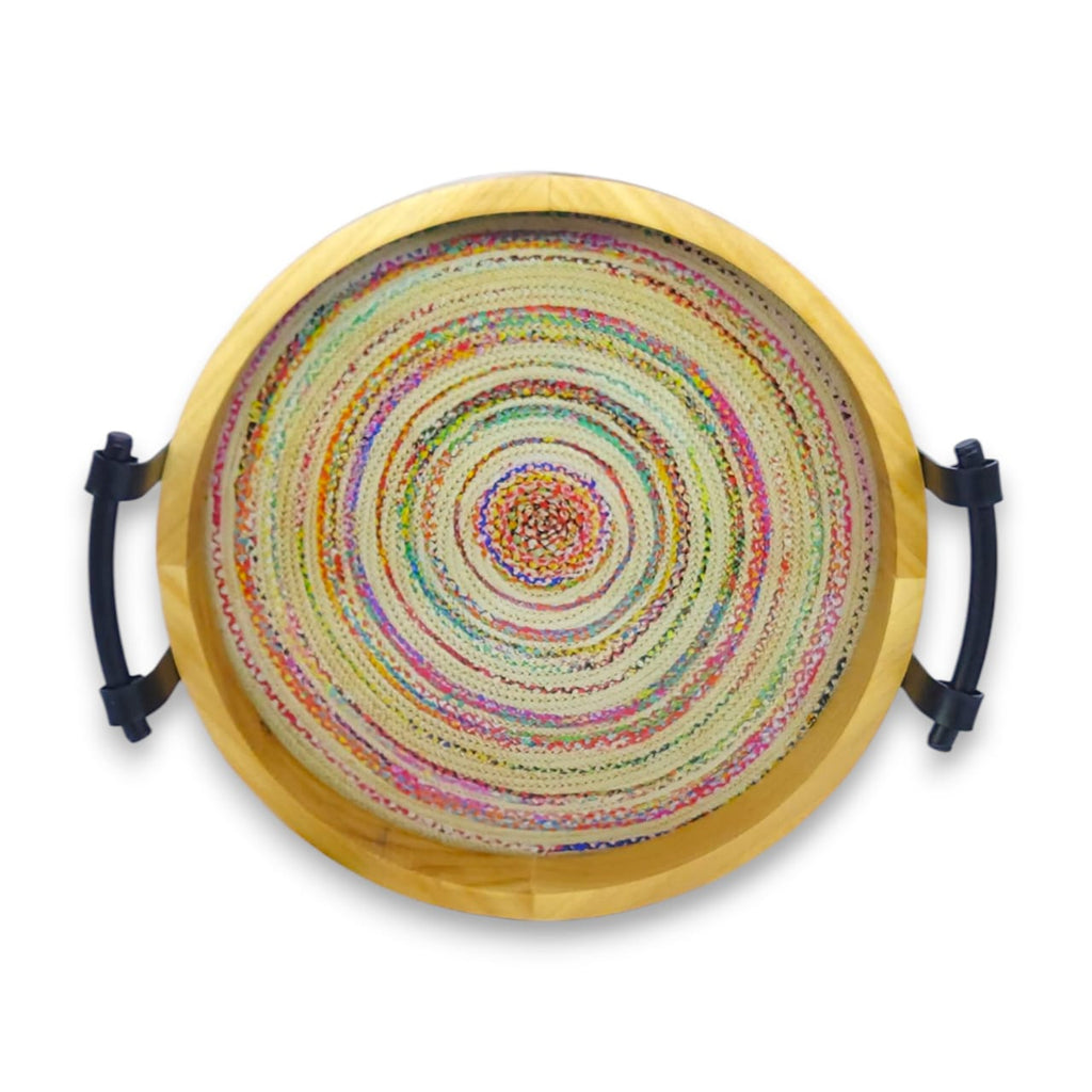 Elevate your serving experience with this 2-Piece Round Wooden Tray Set, featuring one large and one small tray. Each tray is crafted with a wooden exterior and a colorful, glass-lined interior that adds both durability and aesthetic appeal. Perfect for presenting drinks or snacks, these trays combine functional design with vibrant style to enhance any setting. Their sturdy construction ensures long-lasting use, while the compact smaller tray nests neatly inside the larger one for convenient storage.