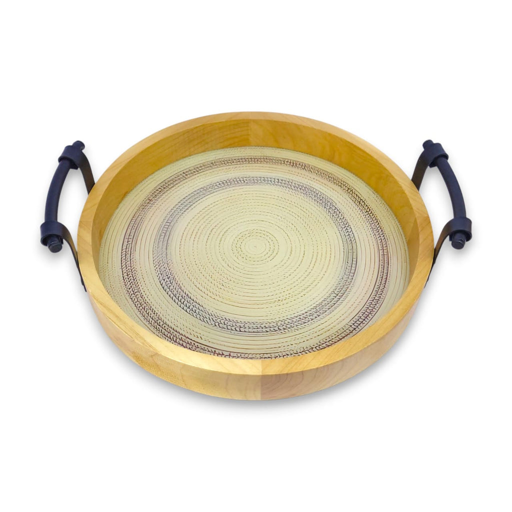 Elevate your serving experience with this 2-Piece Round Wooden Tray Set, featuring one large and one small tray. Crafted with a durable wooden exterior and a glass interior, these trays combine sturdiness with elegance, making them perfect for presenting drinks or snacks with style and ease. Their sizes provide versatile options for different serving needs, ensuring both functionality and a refined look. Ideal for both everyday use and special occasions.