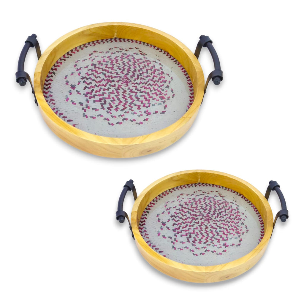 This 2-Piece Round Wooden Tray Set features two sizes—large and small—designed to complement each other perfectly. Each tray includes a glass inset that protects the delicate floral design beneath, combining elegance with functionality. Ideal for serving or display, these trays offer a refined touch to any setting while ensuring durability and easy maintenance.