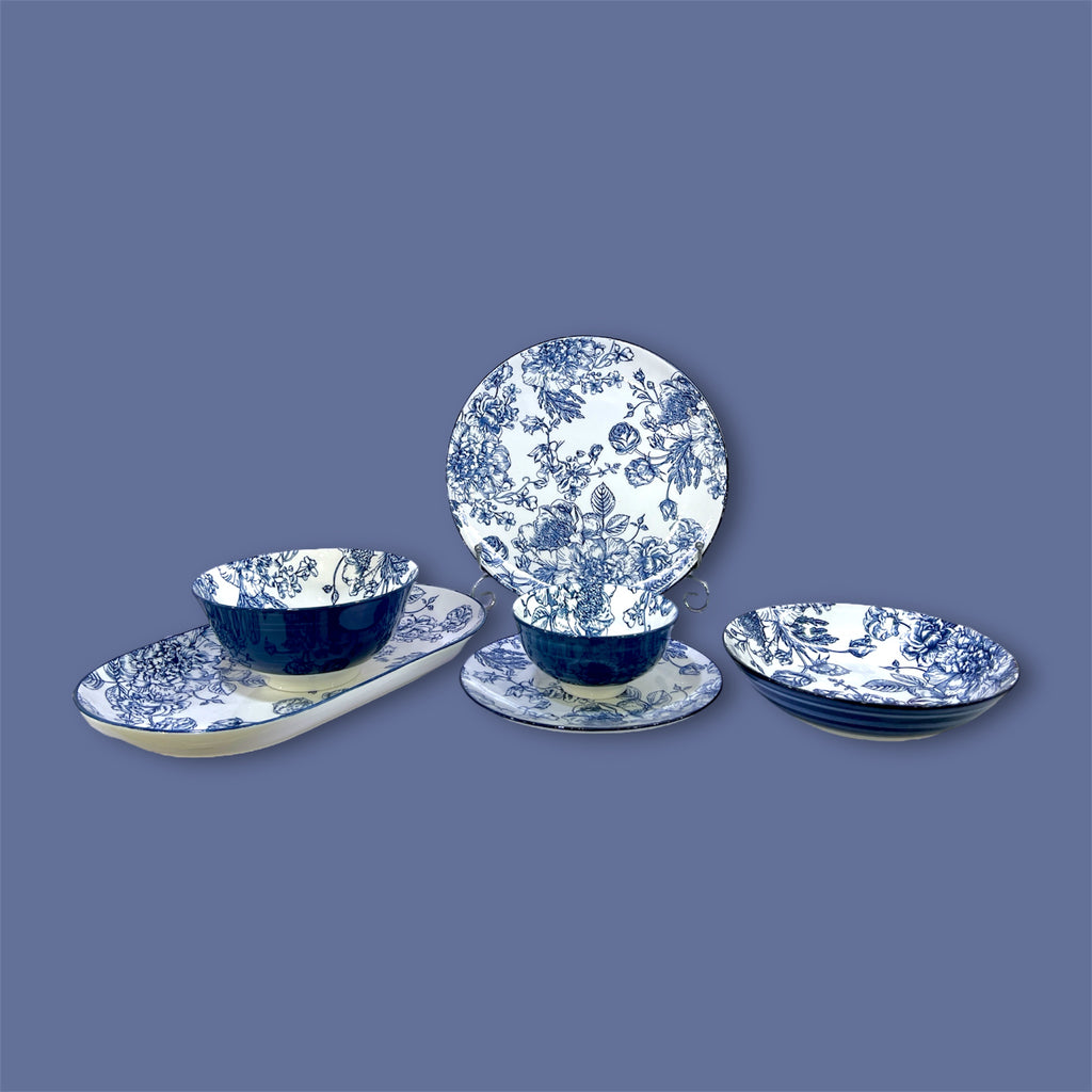Elevate your dining experience with this comprehensive 26-piece Blue floral design dinner set, meticulously curated for both everyday meals and special occasions. This complete service includes six dinner plates, six quarter plates, six deep plates, and six sweet bowls—providing place settings for six guests. The set is complemented by a generous serving bowl and an elegant serving oval dish, ensuring you have everything needed for seamless table service. The coordinated floral design adds sophisticated charm to any table setting, while the complete composition makes this an ideal choice for households seeking quality tableware that combines functionality with aesthetic appeal.