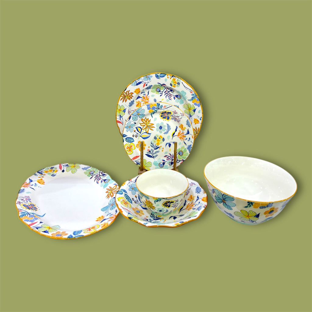 Elevate your dining experience with this comprehensive 26-piece Multi floral design dinner set, meticulously curated for both everyday meals and special occasions. This complete service includes six dinner plates, six quarter plates, six deep plates, and six sweet bowls—providing place settings for six guests. The set is complemented by a generous serving bowl and an elegant serving oval dish, ensuring you have everything needed for seamless table service. The coordinated floral design adds sophisticated charm to any table setting, while the complete composition makes this an ideal choice for households seeking quality tableware that combines functionality with aesthetic appeal.