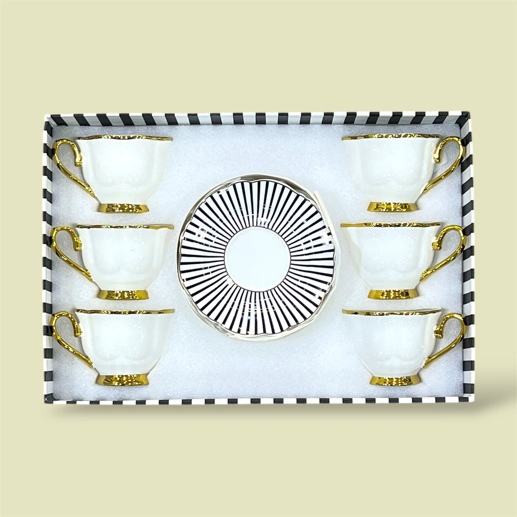 Elevate your tea service with this sophisticated Royal 6-Piece Cup & Saucer Set, meticulously crafted for discerning hosts and tea enthusiasts. Each set includes three matching cups and saucers, designed with refined proportions that enhance both the ritual and enjoyment of tea. The elegant presentation makes it an ideal gift for special occasions, while the durable construction ensures lasting beauty through years of use. Presented in a premium gift box, this collection brings timeless sophistication to any table setting.