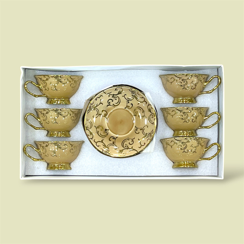 Elevate your tea service with this sophisticated Royal 6-Piece Cup & Saucer Set, meticulously crafted for discerning enthusiasts. Each set includes three matching cups and saucers, designed with refined proportions and elegant detailing that enhances both presentation and functionality. The premium construction ensures durability through regular use while maintaining its lustrous finish. Presented in an attractive gift box, this set makes an exceptional choice for special occasions, entertaining guests, or personal indulgence. Perfect for those who appreciate quality craftsmanship and timeless design in their tableware collection.