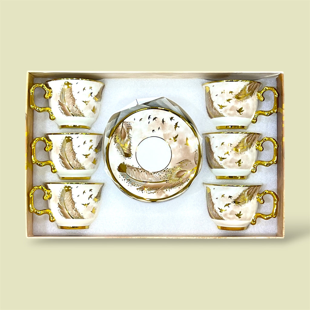Elevate your tea service with this sophisticated Royal 6-Piece Cup & Saucer Set, meticulously crafted for discerning hosts and tea enthusiasts. Each set features premium porcelain construction with refined detailing, delivering both durability and timeless elegance. The matching saucers provide stability while enhancing presentation. Presented in an attractive gift box, this collection makes an exceptional choice for special occasions, weddings, or as a distinguished housewarming gift. Perfect for daily use or formal entertaining.