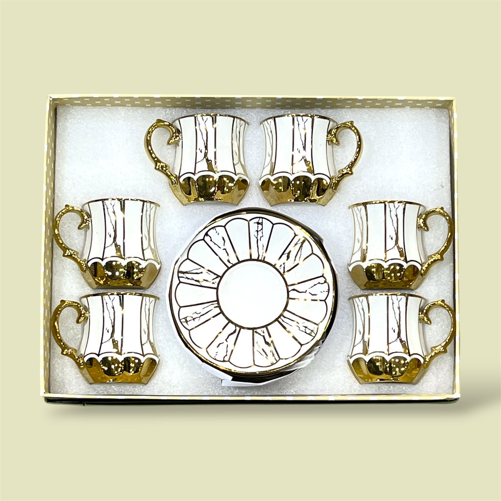 Elevate your tea service with this sophisticated Royal 6-Piece Cup & Saucer Set, meticulously crafted for discerning hosts and tea enthusiasts. Each set includes three matching cups and saucers, designed with refined proportions that enhance both the ritual and enjoyment of tea. The elegant presentation makes it an ideal gift for special occasions, while the durable construction ensures lasting beauty through years of use. Perfect for entertaining guests or creating a curated table setting that reflects your refined taste.