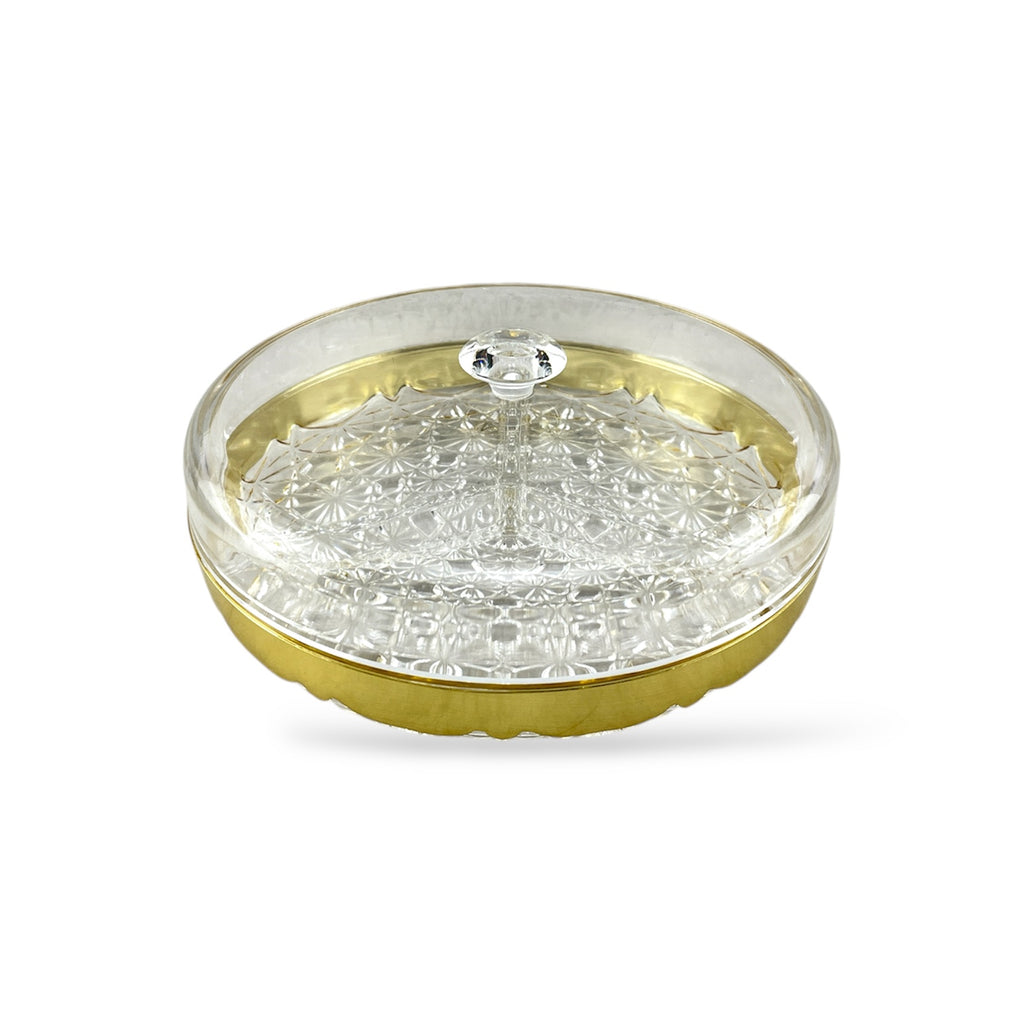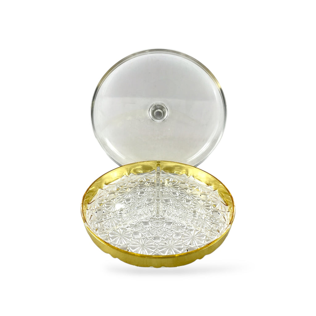 Elevate your dry fruit presentation with this sophisticated 3-portion round acrylic dish. Crafted from premium acrylic, it combines durability with crystal-clear transparency, allowing the natural colors of your dry fruits to shine. The thoughtfully divided compartments keep almonds, cashews, and other varieties neatly organized while maintaining an elegant table presence. Perfect for entertaining guests or everyday snacking, this versatile piece transitions seamlessly from dining table to kitchen counter. Its lightweight construction and easy-to-clean surface make maintenance effortless, while the modern design complements any décor aesthetic.