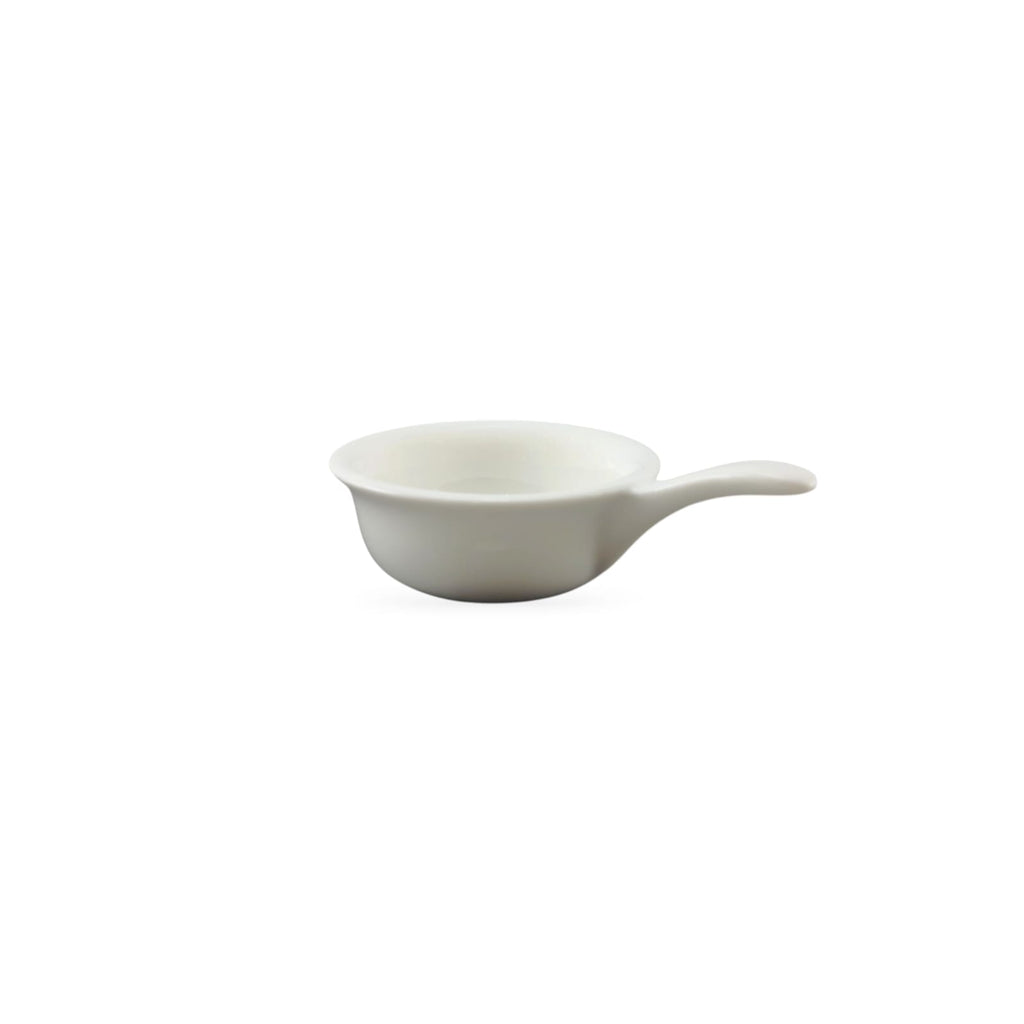 The Danny Home Ceramic Square Ramekin 5.25" features a practical handle for easy serving of sauces and condiments. Crafted from durable ceramic, it offers excellent heat retention and is suitable for both serving and baking. Its square design adds a modern touch to your dining presentation while providing functionality for portion control and ease of use. Ideal for sauces, dips, and small appetizers, this ramekin combines practicality with style for professional or home use.