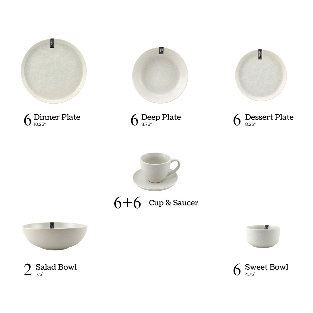 Elevate your dining experience with the Danny Home 38-Piece Speckled Grey Dinner Set crafted from premium fine porcelain. This comprehensive collection features six dinner plates, six sweet plates, six deep soup plates, six sweet bowls, six cups with matching saucers, and two generous serving bowls, everything needed for elegant table settings.