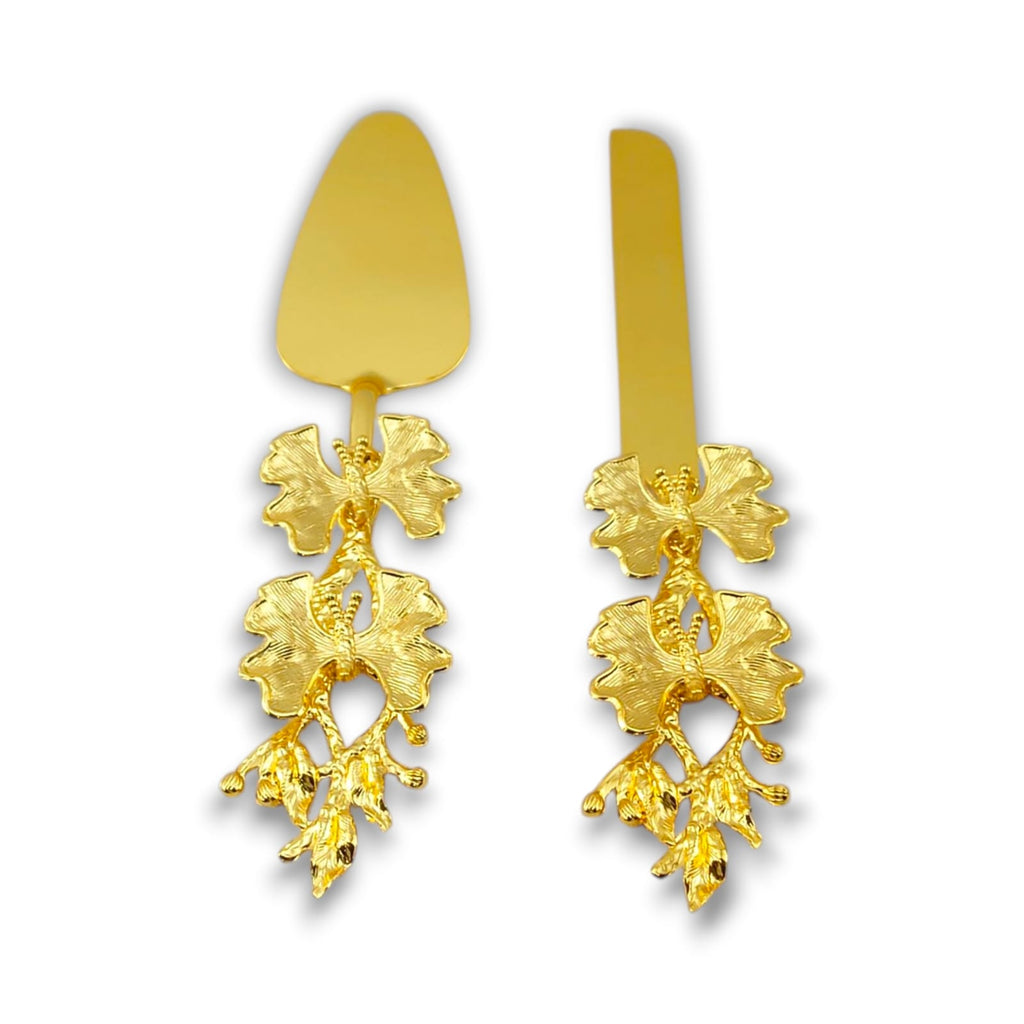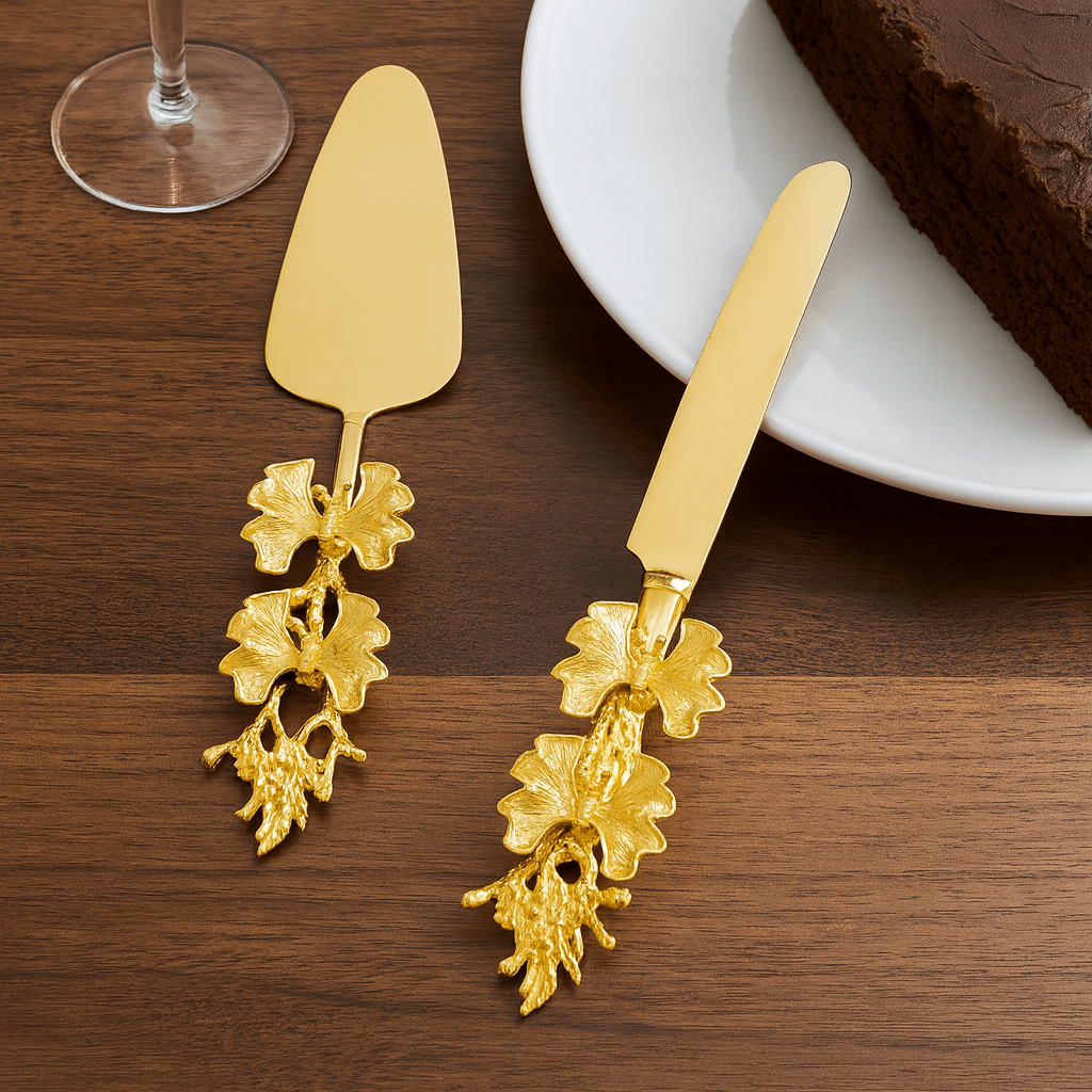 Elevate your cake-serving experience with this Fancy Cake Lifter & Knife featuring an elegant butterfly design in a golden finish. Crafted for precision and style, it ensures clean, effortless slices while adding a sophisticated touch to your table. Ideal for both everyday use and special occasions, this set combines functionality with refined aesthetics for a seamless serving experience.