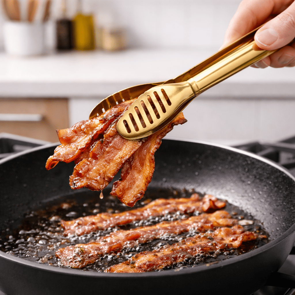 Precision-engineered tong crafted from premium stainless steel with a distinctive golden finish. Features a secure locking mechanism and ergonomic grip for confident handling in the kitchen. The durable construction resists corrosion and staining, making it ideal for grilling, serving, and food preparation. Heat-resistant design withstands high temperatures without warping. A versatile kitchen essential that combines functionality with refined aesthetics.