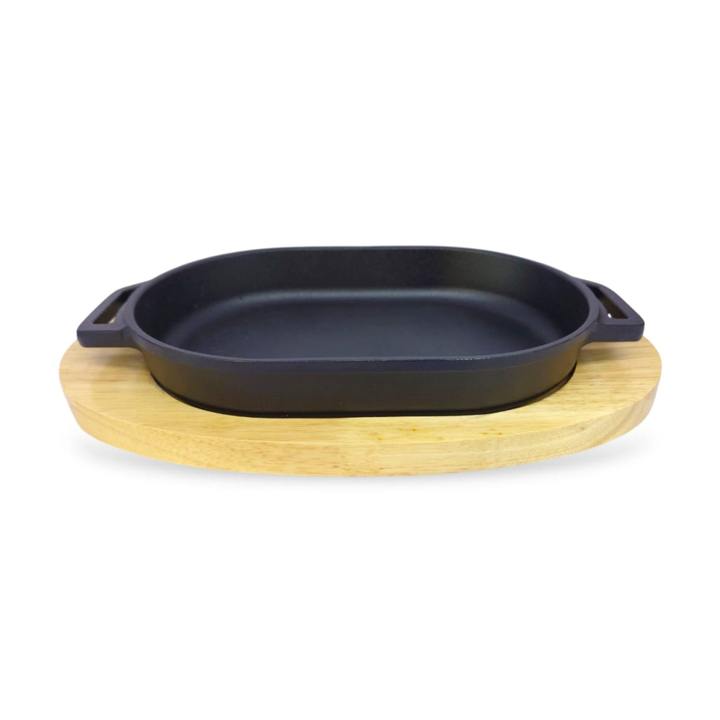 The Prima Oval Sizzling Dish (25 cm) offers a professional-grade cooking experience, ideal for presenting dishes that require heat retention and visual appeal. Its durable construction ensures even heat distribution, enhancing flavor and keeping food sizzling hot. Perfect for restaurants or home chefs seeking to elevate their culinary presentation with a reliable, easy-to-handle sizzling platter.