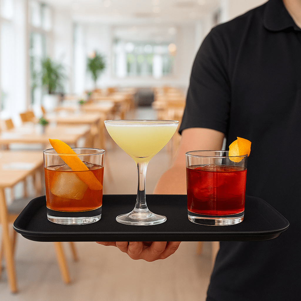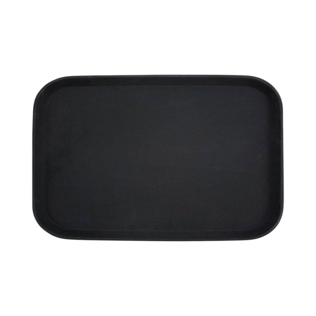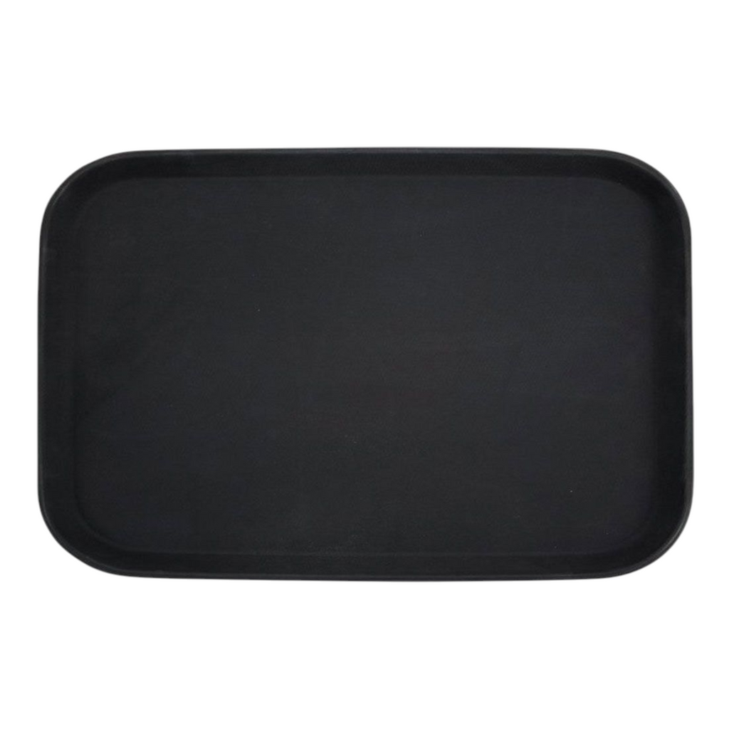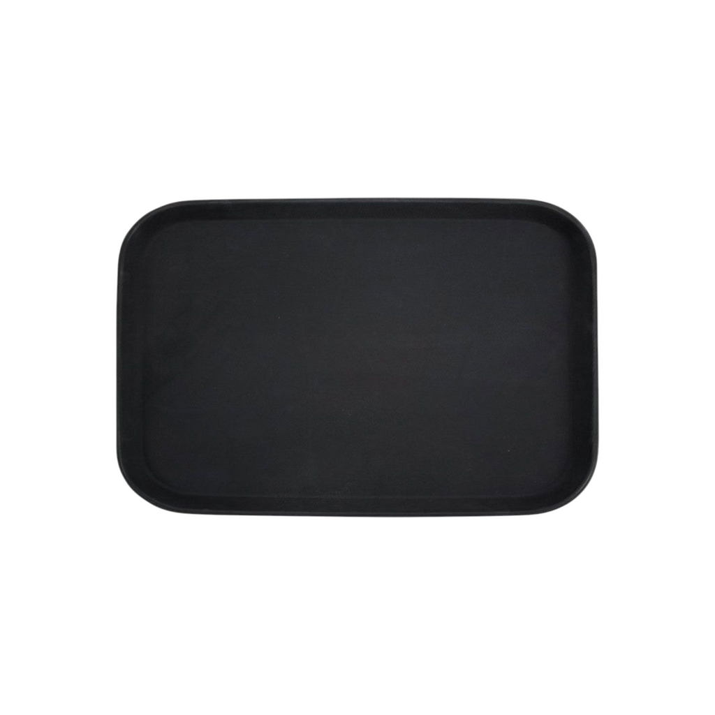 The Raffle Anti-Slip Rectangle Black Serving Tray is designed for professional use in bars and restaurants. Crafted from durable plastic, it features a non-slip mat that securely holds glasses and drinks in place, minimizing spills and enhancing safety. Available in three practical sizes 14x18 cm, 15x20 cm, and 16x22 cm, this tray offers versatile serving options while maintaining stability and ease of handling during busy service.