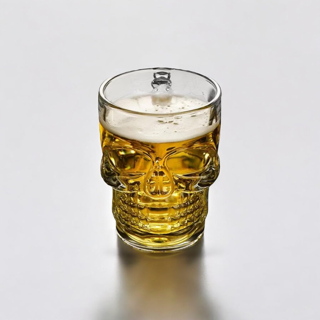 The Skull-Shaped Beer Glass Mug 400 ml is a distinctive choice for beer enthusiasts seeking both style and functionality. Made from high-quality glass, it showcases your beverage while featuring an intricately designed skull shape that adds a bold statement to any occasion. Its generous 500 ml capacity is ideal for a satisfying pour, and the sturdy construction ensures durability. This mug combines artistic craftsmanship with practical use, perfect for collectors or those looking to elevate their drinking experience with a unique touch.